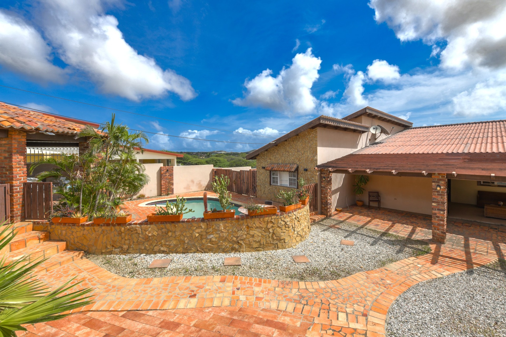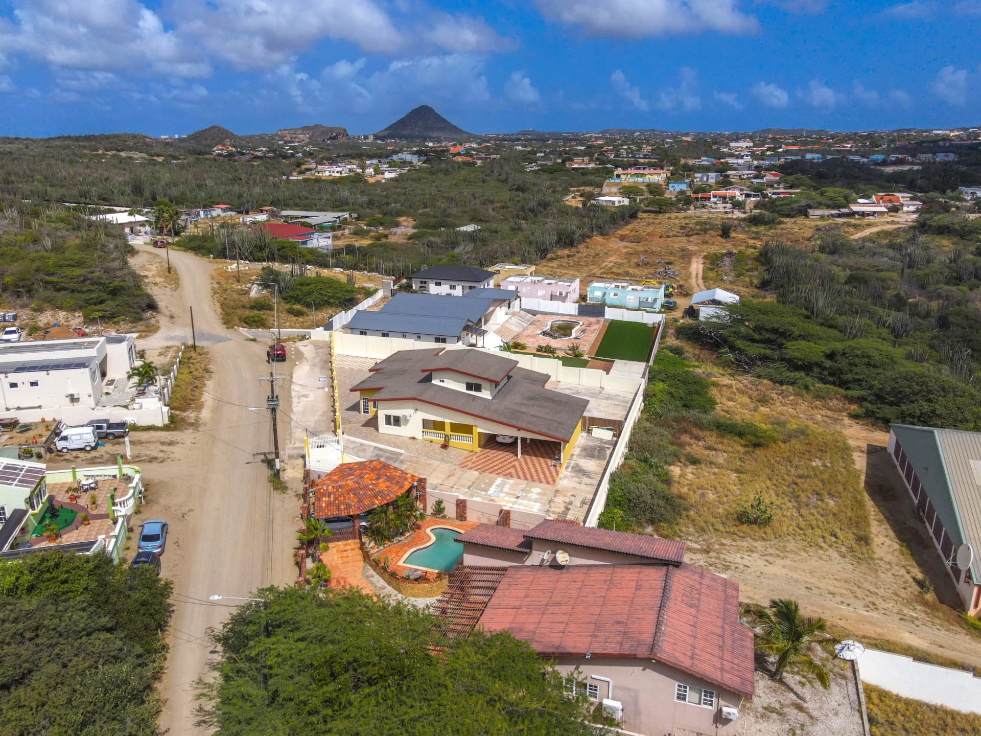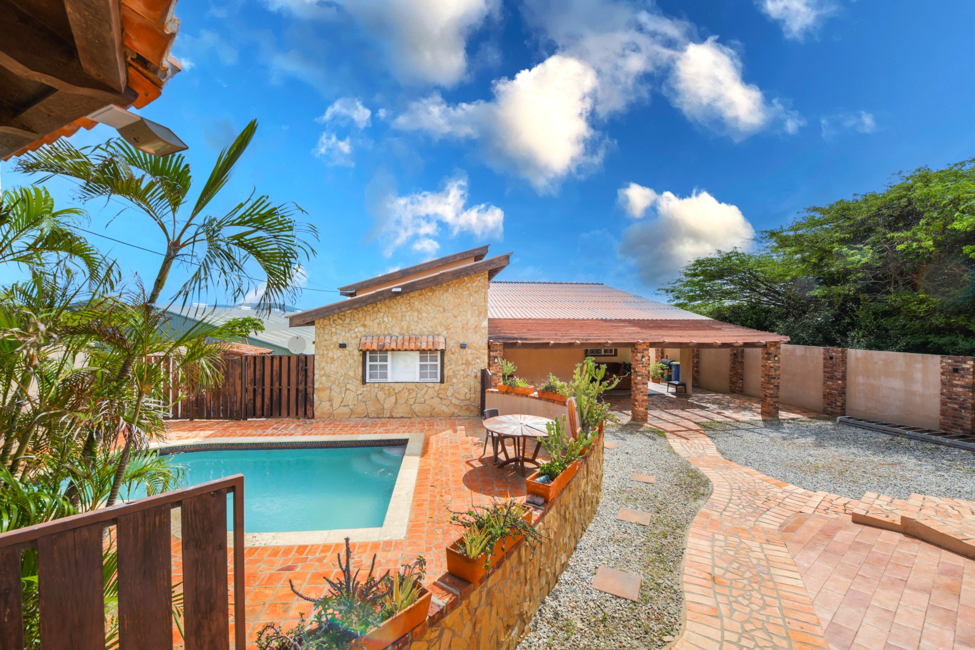 Discover this charming country-style home with swimming pool, located in the hills of Barcadera in Aruba. Set on a spacious 662 m² property, this finca-style residence offers privacy, tranquility, and beautiful green views.