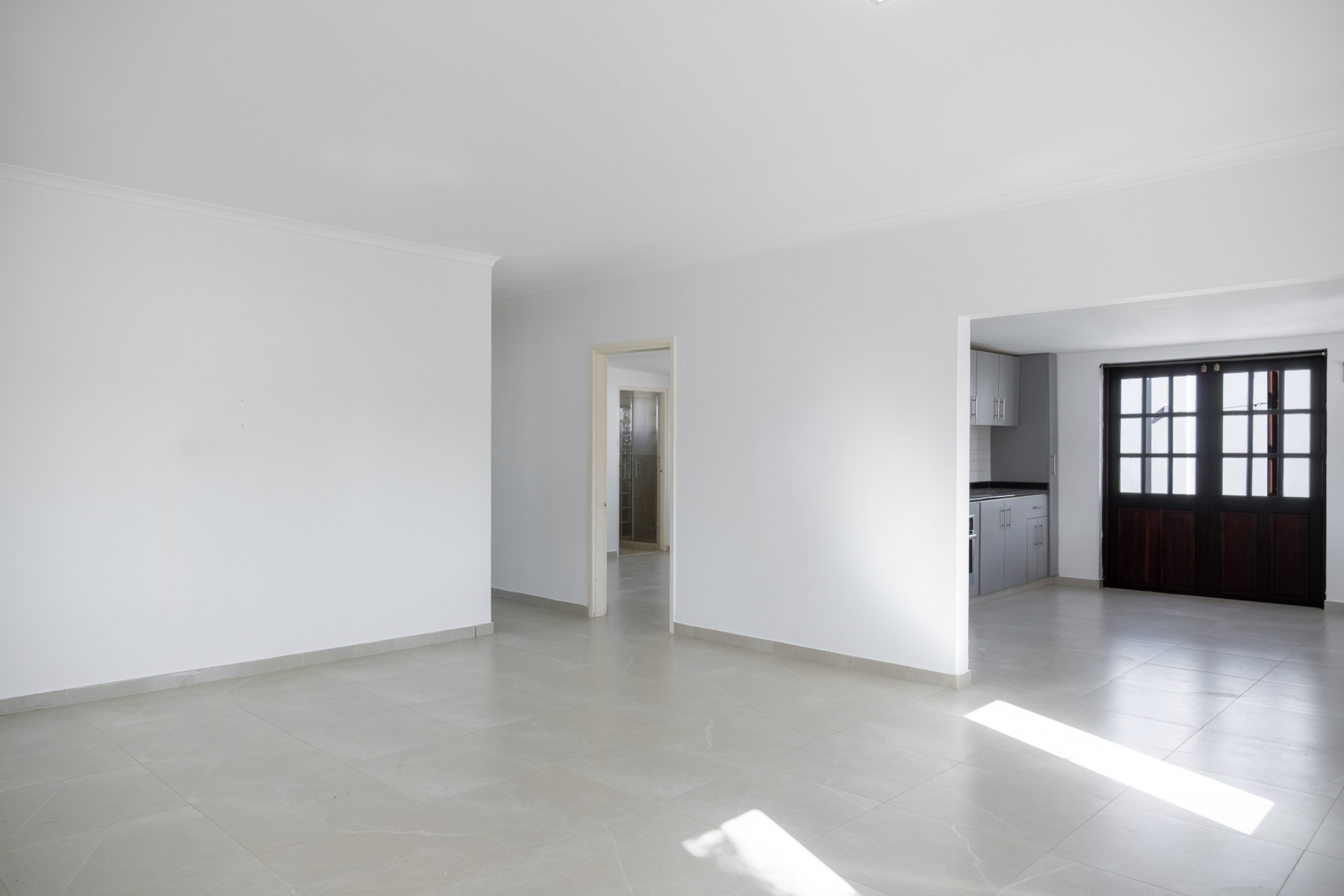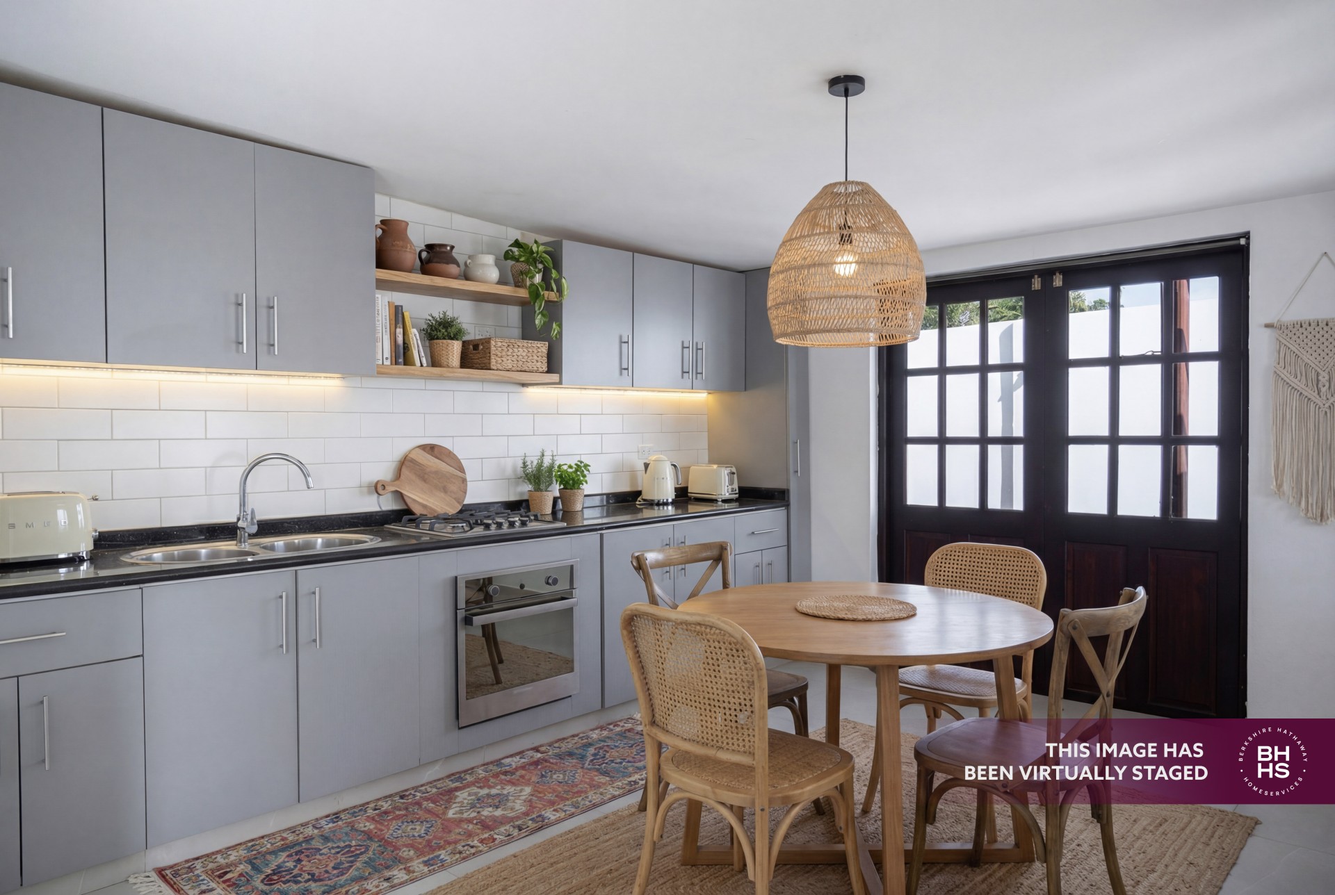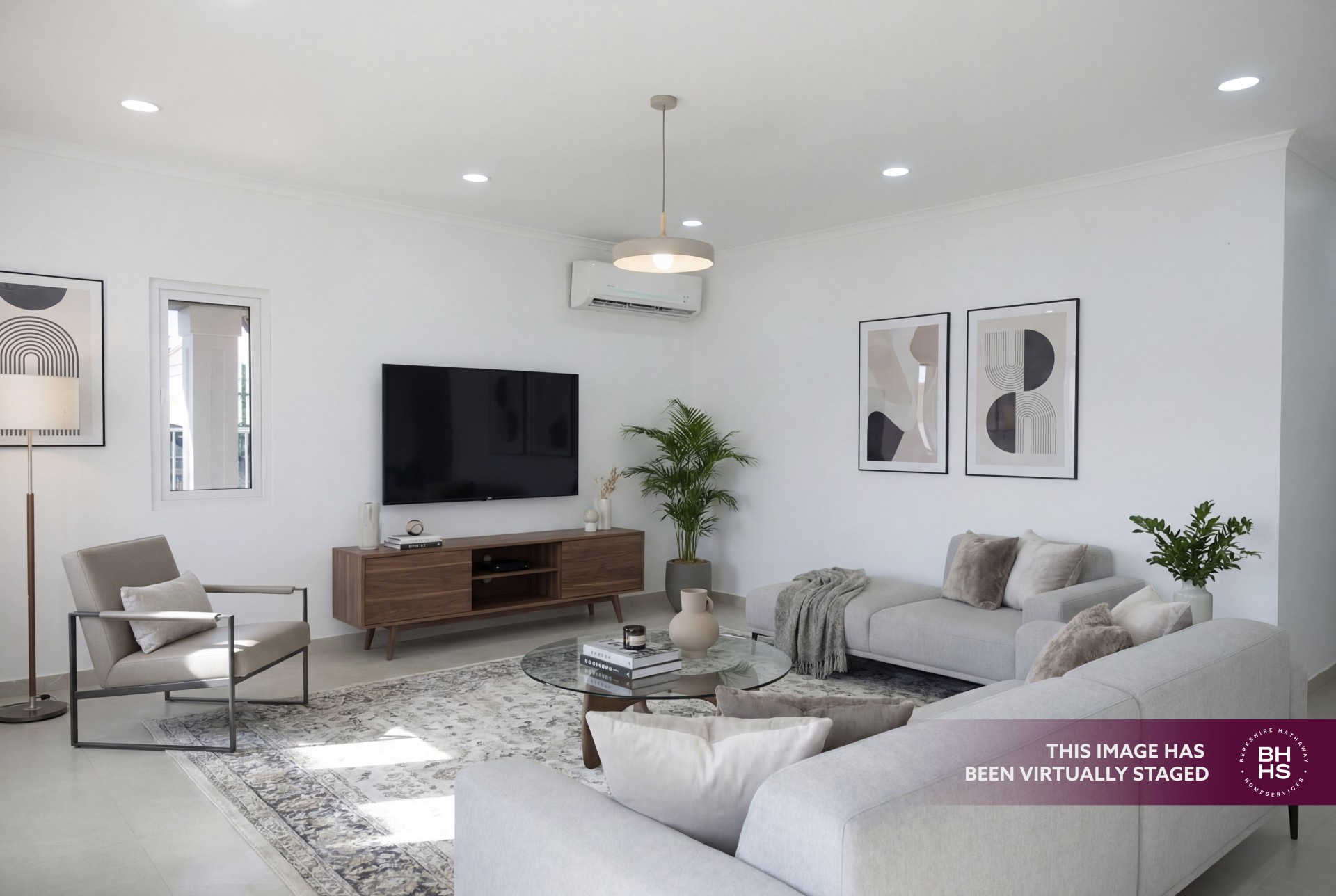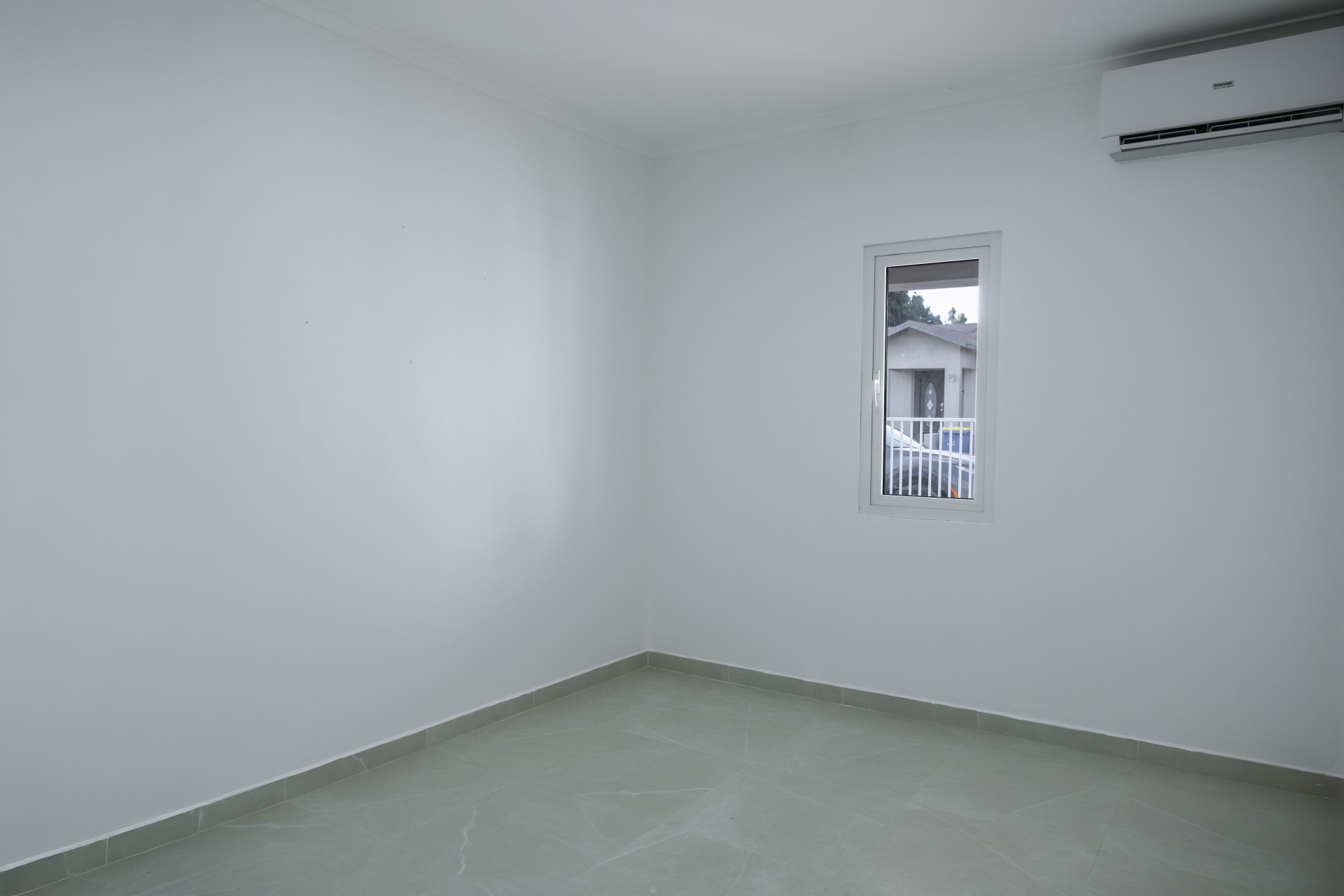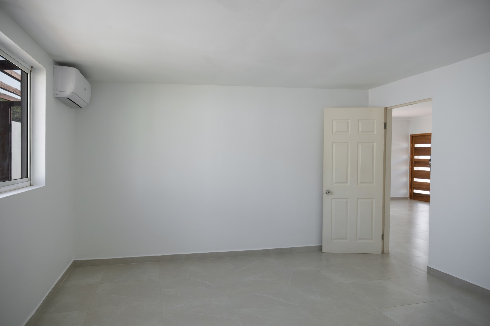 The open-concept living, kitchen, and dining area creates a bright and functional layout with direct access to a covered patio, ideal for outdoor living. The master bedroom includes an ensuite bathroom and walk-in closet, while the two additional bedrooms share a bathroom. Air conditioning is installed in all bedrooms and the kitchen/dining area.
