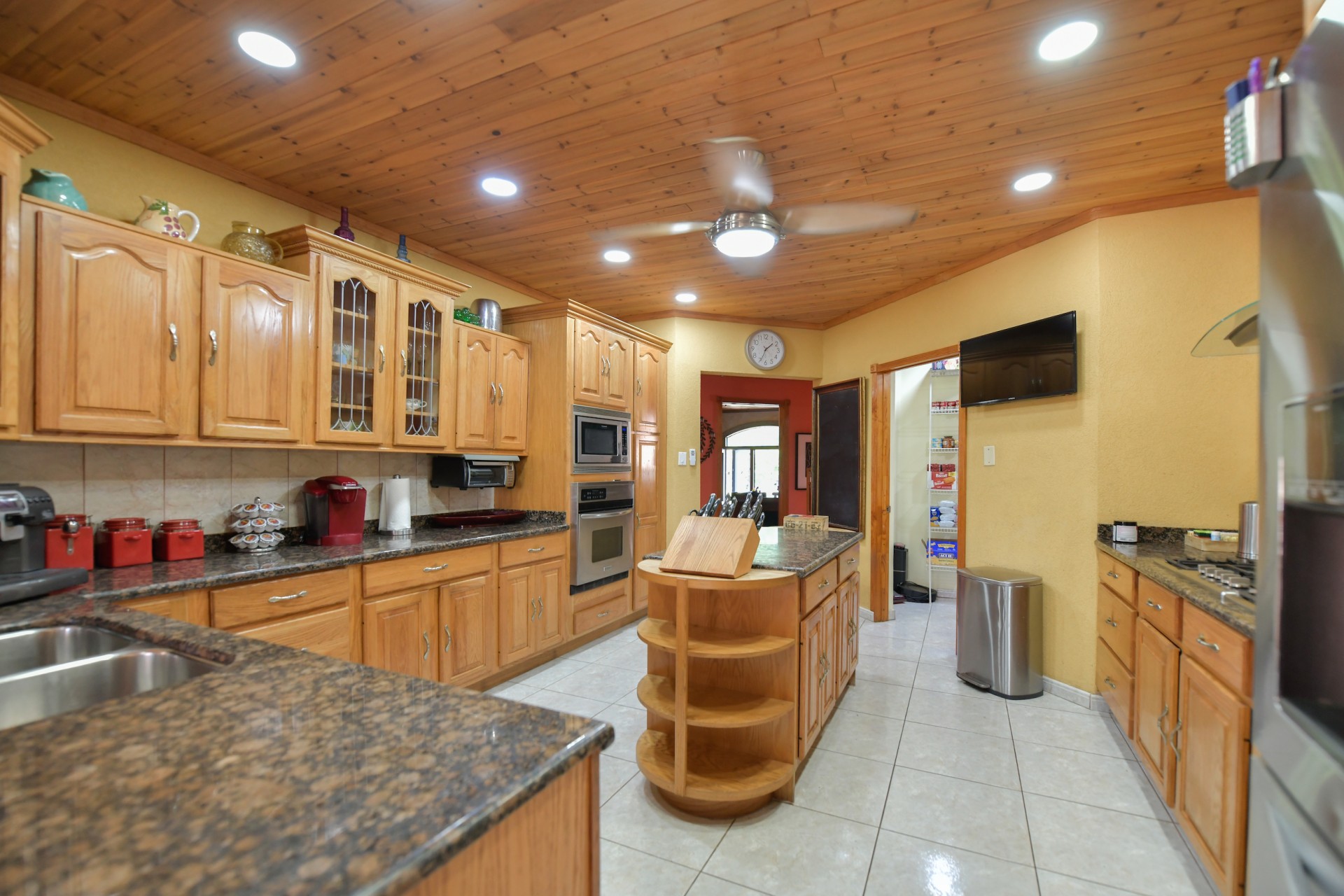 At the heart of the home lies a fully equipped kitchen, beautifully finished with granite countertops, a stylish kitchen bar, and a large walk-in pantry—ideal for both everyday living and hosting guests. Step outside to discover a fully equipped outdoor kitchen, generous sitting areas, and an impressive entertainment zone designed to enjoy Aruba’s year-round sunshine.
