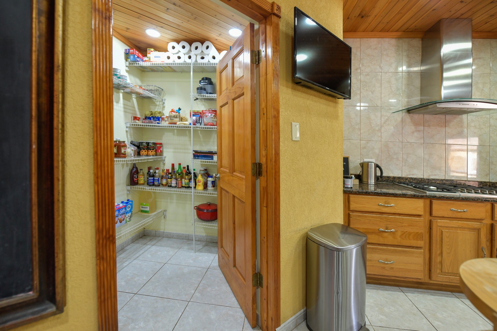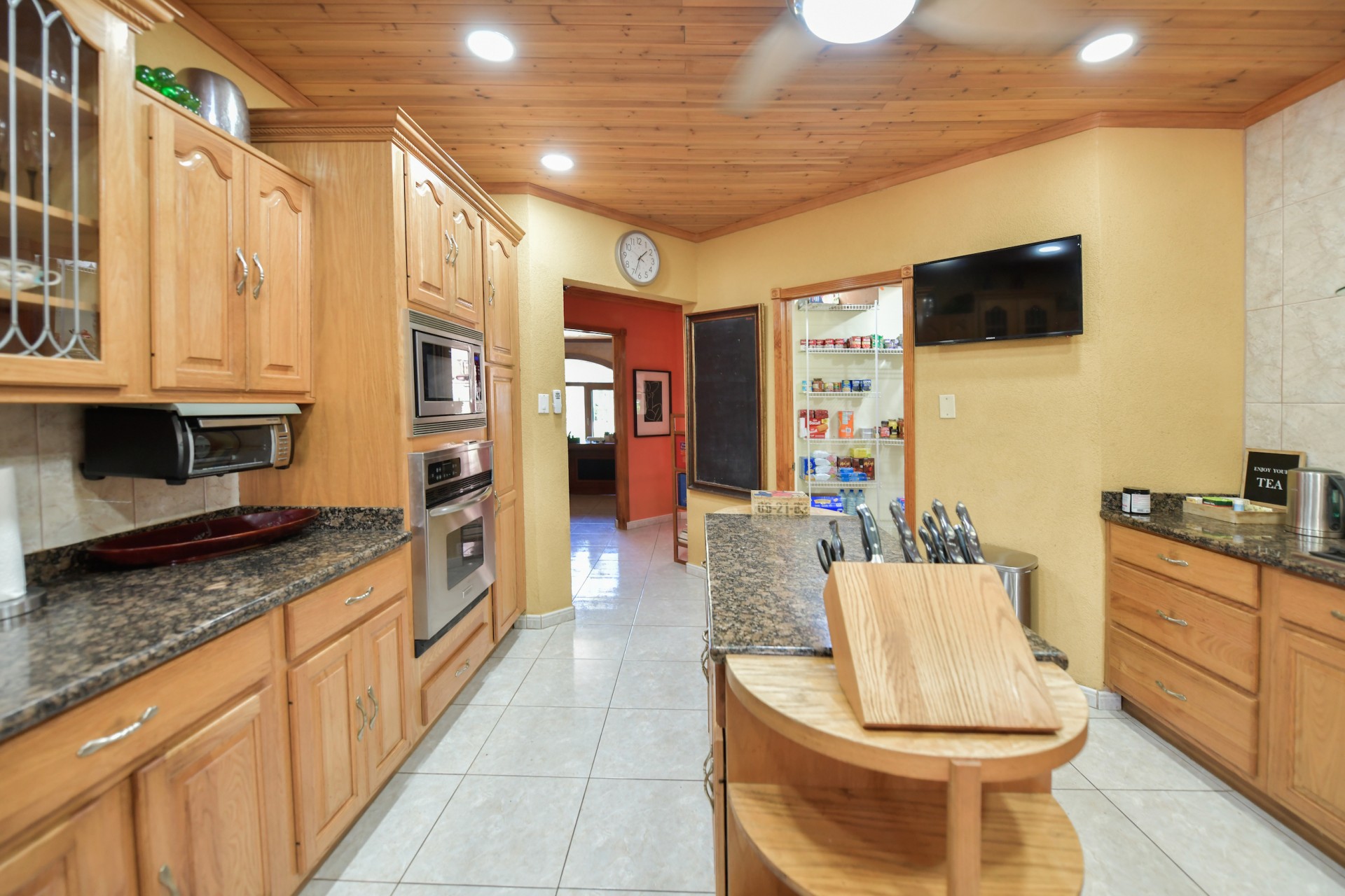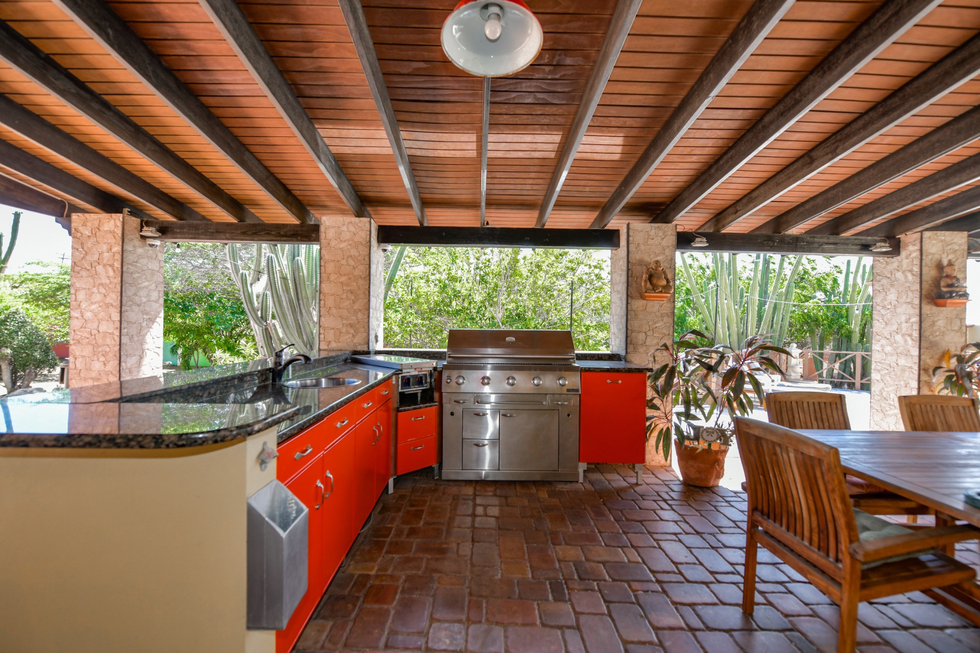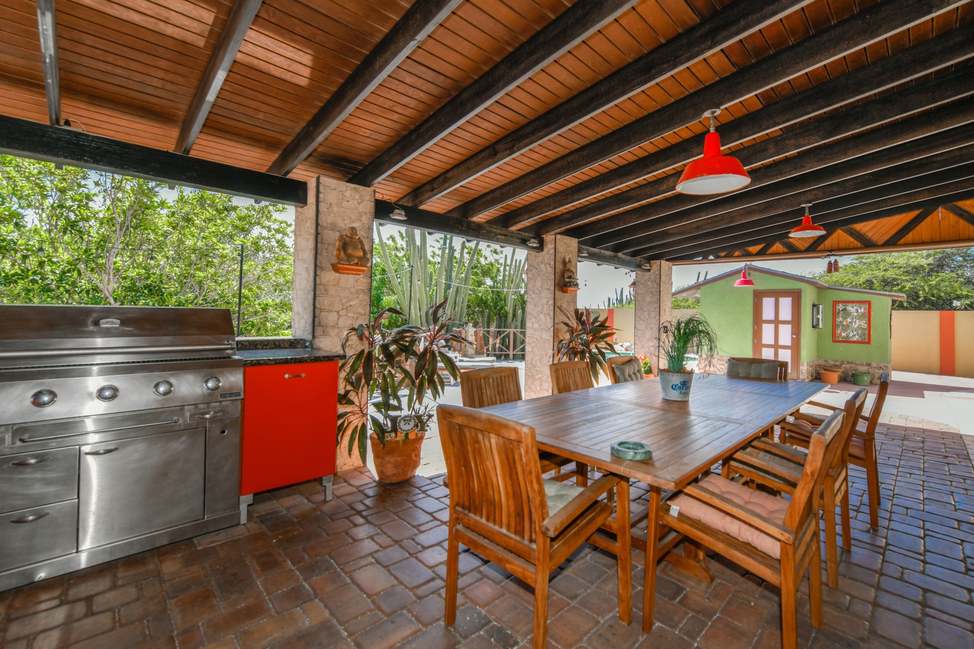 At the heart of the home lies a fully equipped kitchen, beautifully finished with granite countertops, a stylish kitchen bar, and a large walk-in pantry—ideal for both everyday living and hosting guests. Step outside to discover a fully equipped outdoor kitchen, generous sitting areas, and an impressive entertainment zone designed to enjoy Aruba’s year-round sunshine.