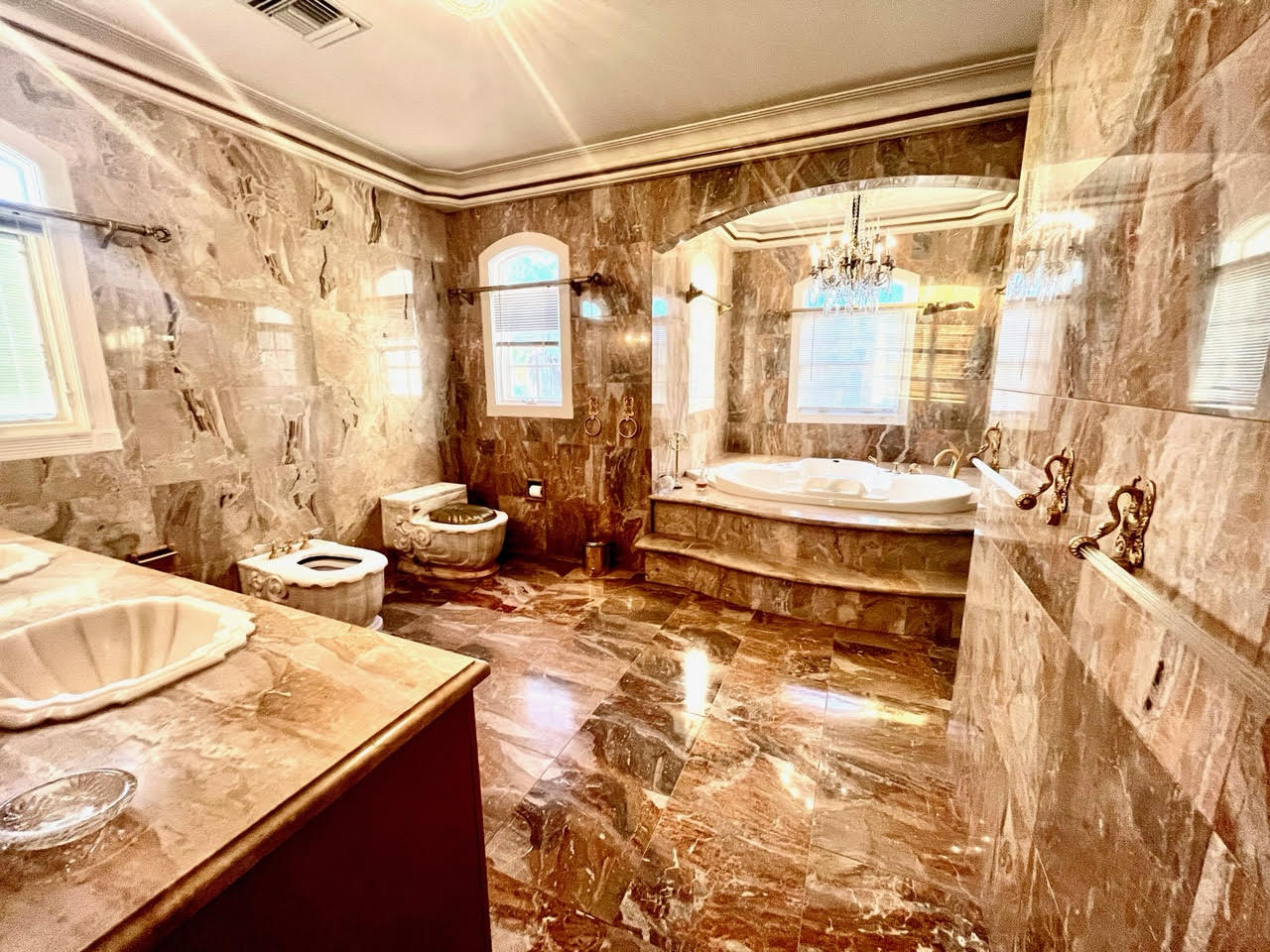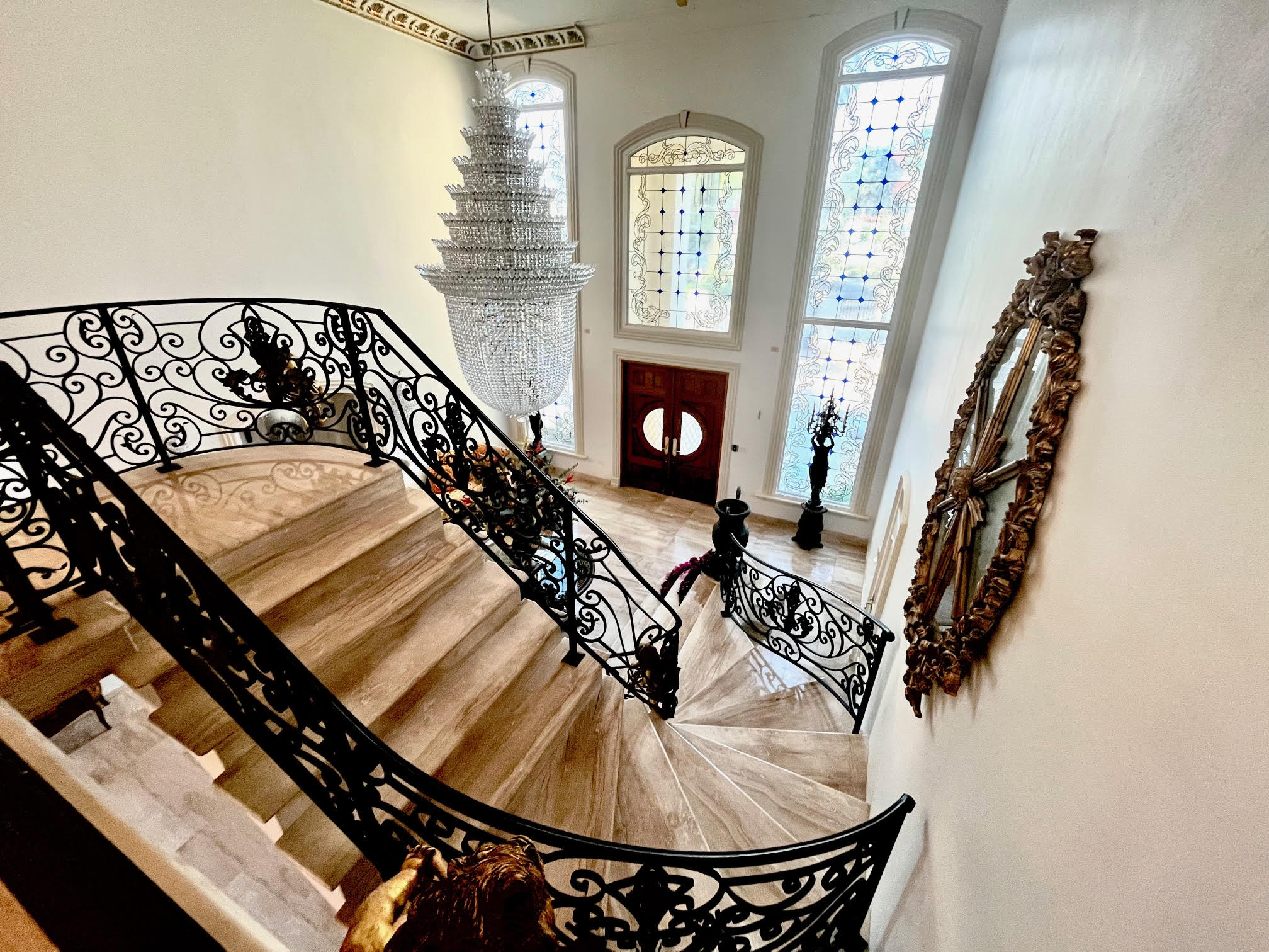 Inside, soaring cathedral ceilings, marble finishes, and custom ironwork create an atmosphere of timeless elegance. Every detail reflects exceptional craftsmanship and quality.