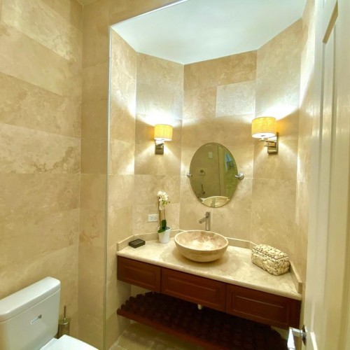 Welcome to Anabui Residences located in the exclusive gated community of Tierra del Sol, Spa & Country Club at the northwest edge of Aruba. Anabui Residences is a luxurious three story building with elevator consisting of 6 luxury fully furnished residences, each separately approx. 230 m2 in size. Anabui Residence # 2 is located on the first floor. This 3 master sized bedroom residence is distinctive in both architecture and interior. Top quality construction and appointments throughout large open living spaces, timeless 15-foot high ceilings, spectacular views, transitional-style furnishing colors and textures reminiscent of the natural landscape surroundings that quietly say welcome, relax and enjoy. Each bedroom has its own spacious en-suite bathroom. The open concept living/dining area comes fully equipped with a kitchen with kitchen island, granite counter tops, deluxe refrigerator and sleek high-spec appliances and is attached to large shaded terraces ideal for soaking in the views of the surrounding land, the golf course and the beautiful ocean. Conveniently located adjacent to all the facilities and also the golf course. Features likewise private patios, balconies and private parking.