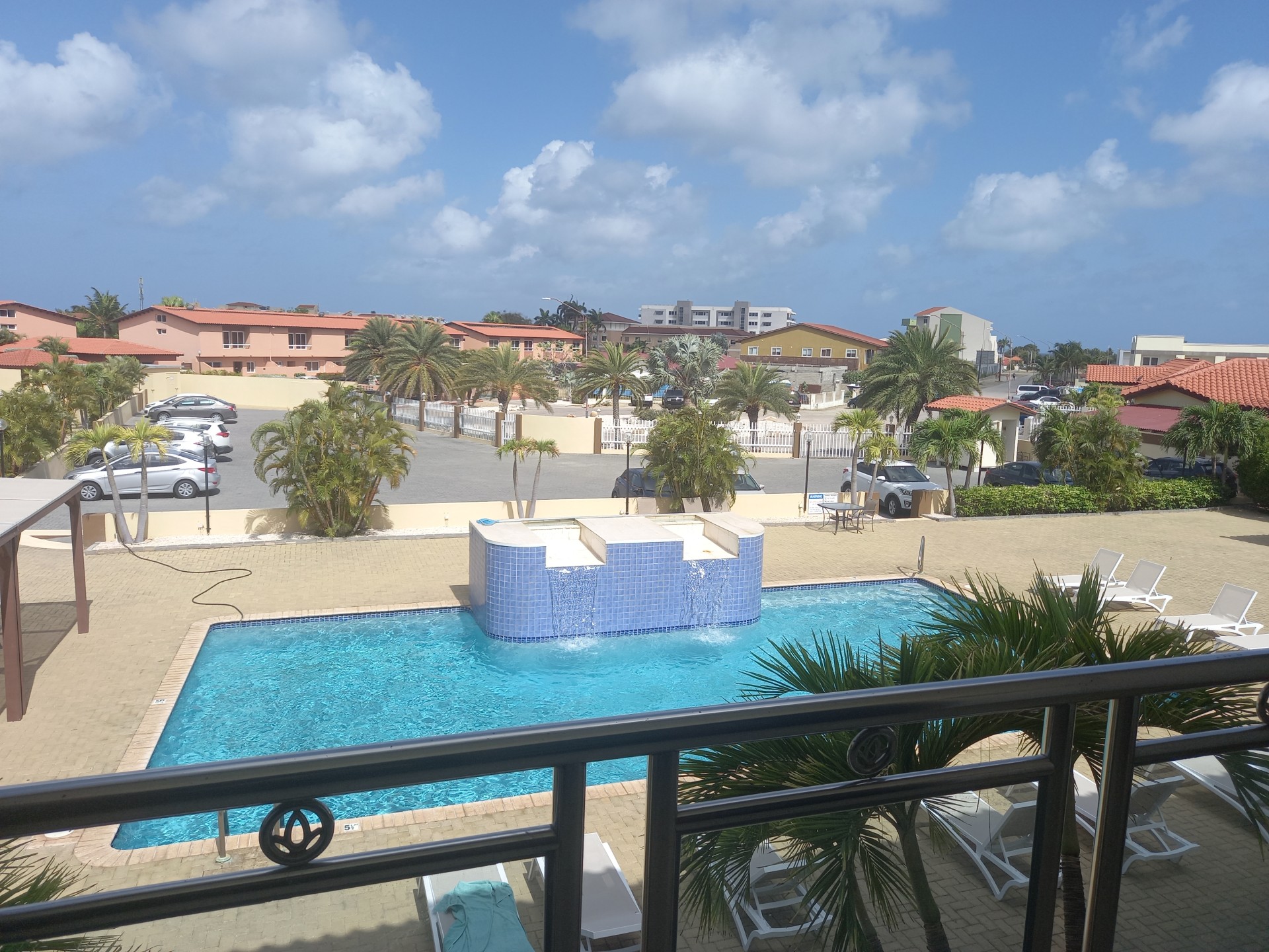 Cozy 2 bedrooms and 2.5 bathrooms, located at the Breeze Aruba Condominiums. Master bedroom has a balcony overlooking the good size swimming pool and the golden sunsets! Each bedroom has a fully size closet and private full bathroom. Unit is fully equipied, with a spacious laundry/pantry. A private patio, where you can have your quite mornings or evenings. The porch and main entrance are just a few steps from the swimming pool. A little further out, you will find the Covered deck with the access to BBQ pits for when you want to entertain. Conveniently located at the cul-de-sac, completely fenced, yet complete freedom to securely park your car inside, or walk out from the small door. Parking is with CODE entrance only! Right next to the premesis you are surrounded to convenient stores, various restaurants at walking distance and the Eagle Beach, just a few steps away! You are not driving? No problem, the bus stop is just at the end of the road! 24/7 security.