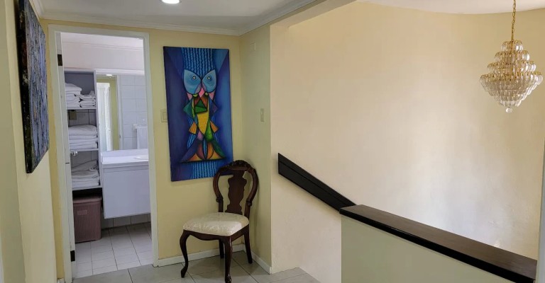 House consist of 2 bedrooms and one bathroom on the 2nd floor, and 1 bedroom and 1.5 bathroom on the ground floor, cozy back patio and a terrace with an amazing view. Decorated with fine paintings including local artists, this cozy house ready to be your new home!