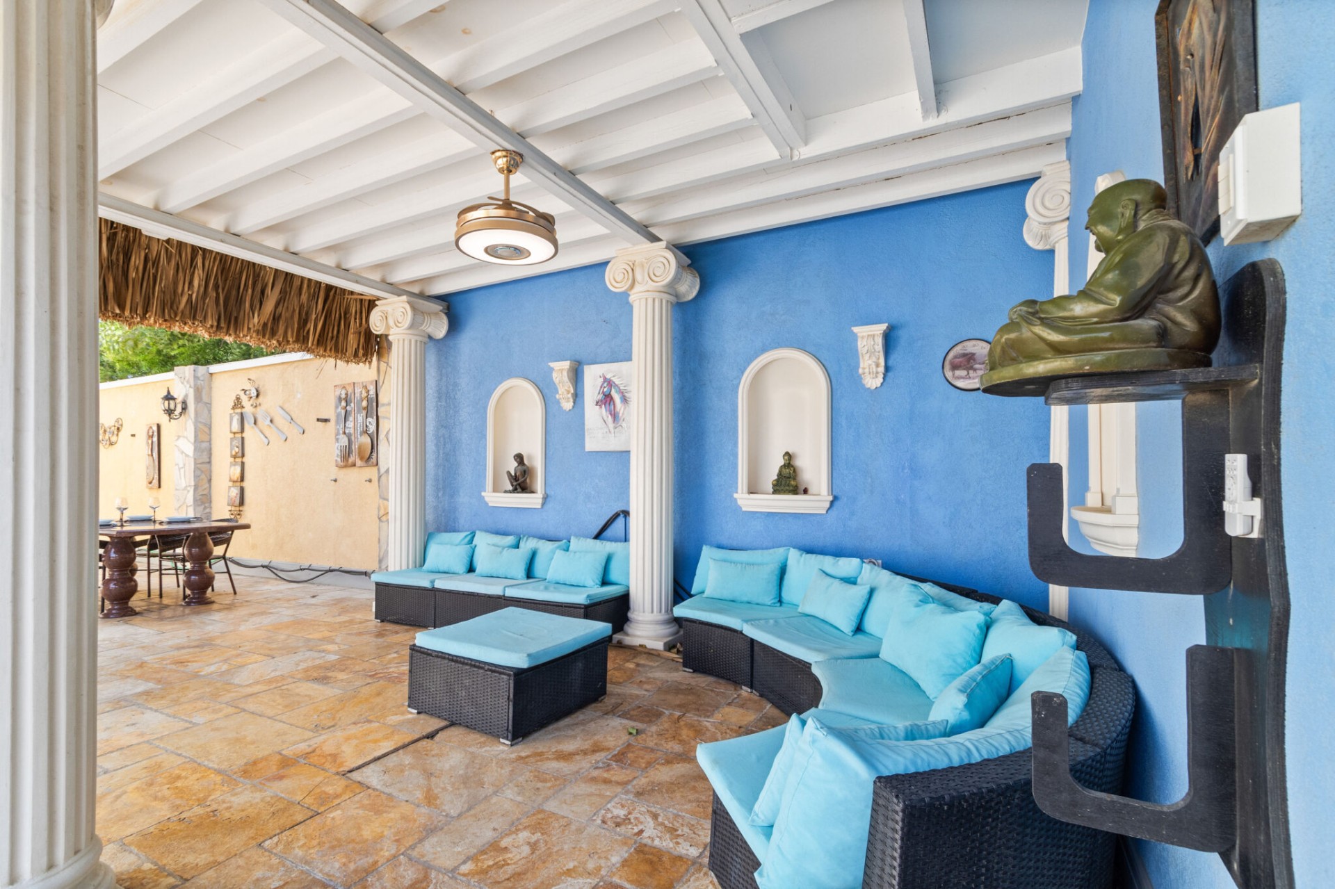 Located in the exclusive enclave of Koyari, just a stone's throw from the pristine shores of Palm Beach in Aruba, awaits a residence that epitomizes opulence and elegance – La Casa Piu Bella. This two-story villa is not just a home; it is a testament to the artistry of luxury living, where every detail has been meticulously crafted to create an unparalleled living experience.
