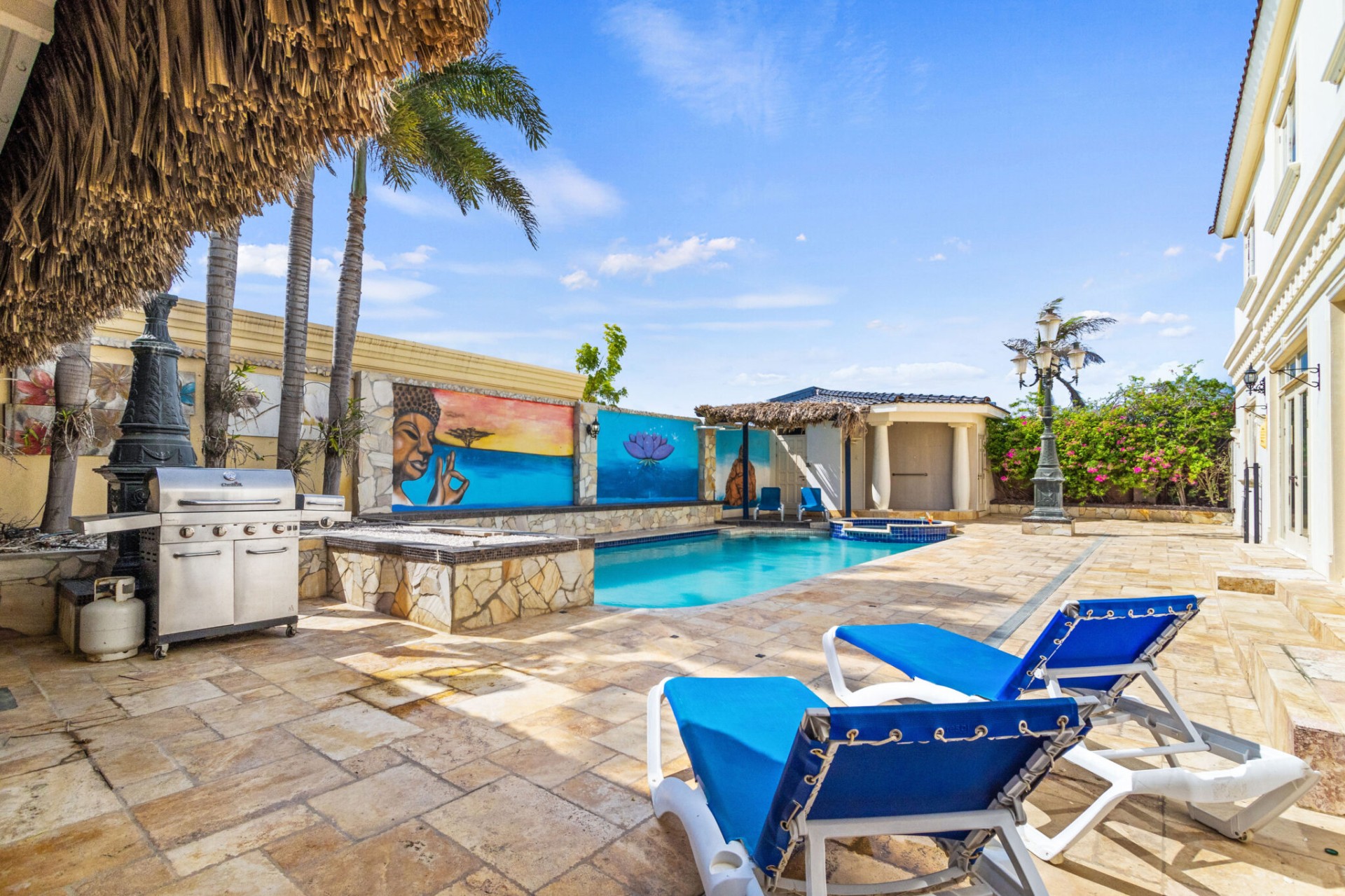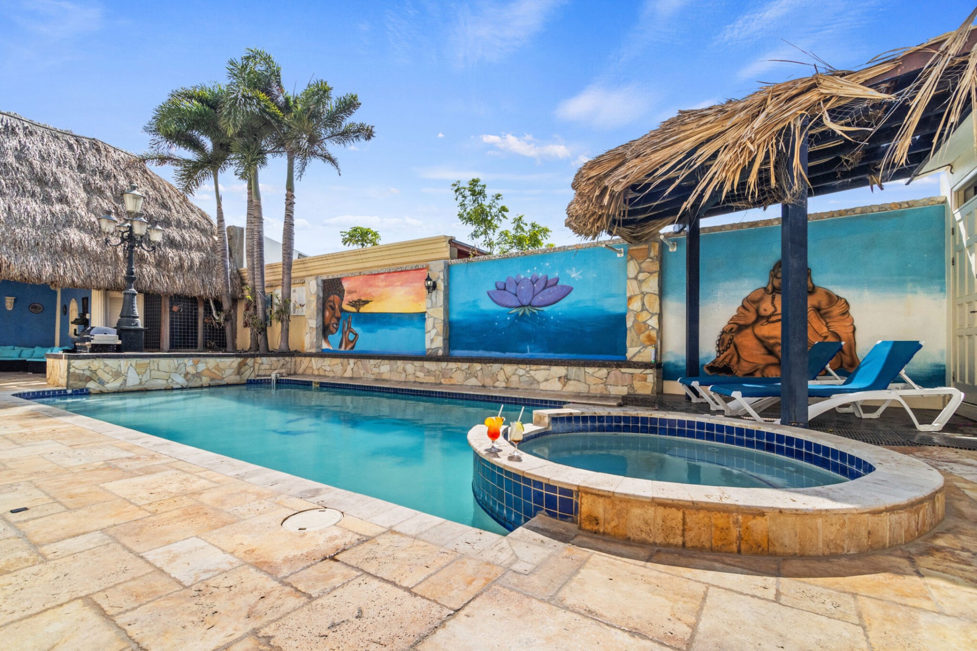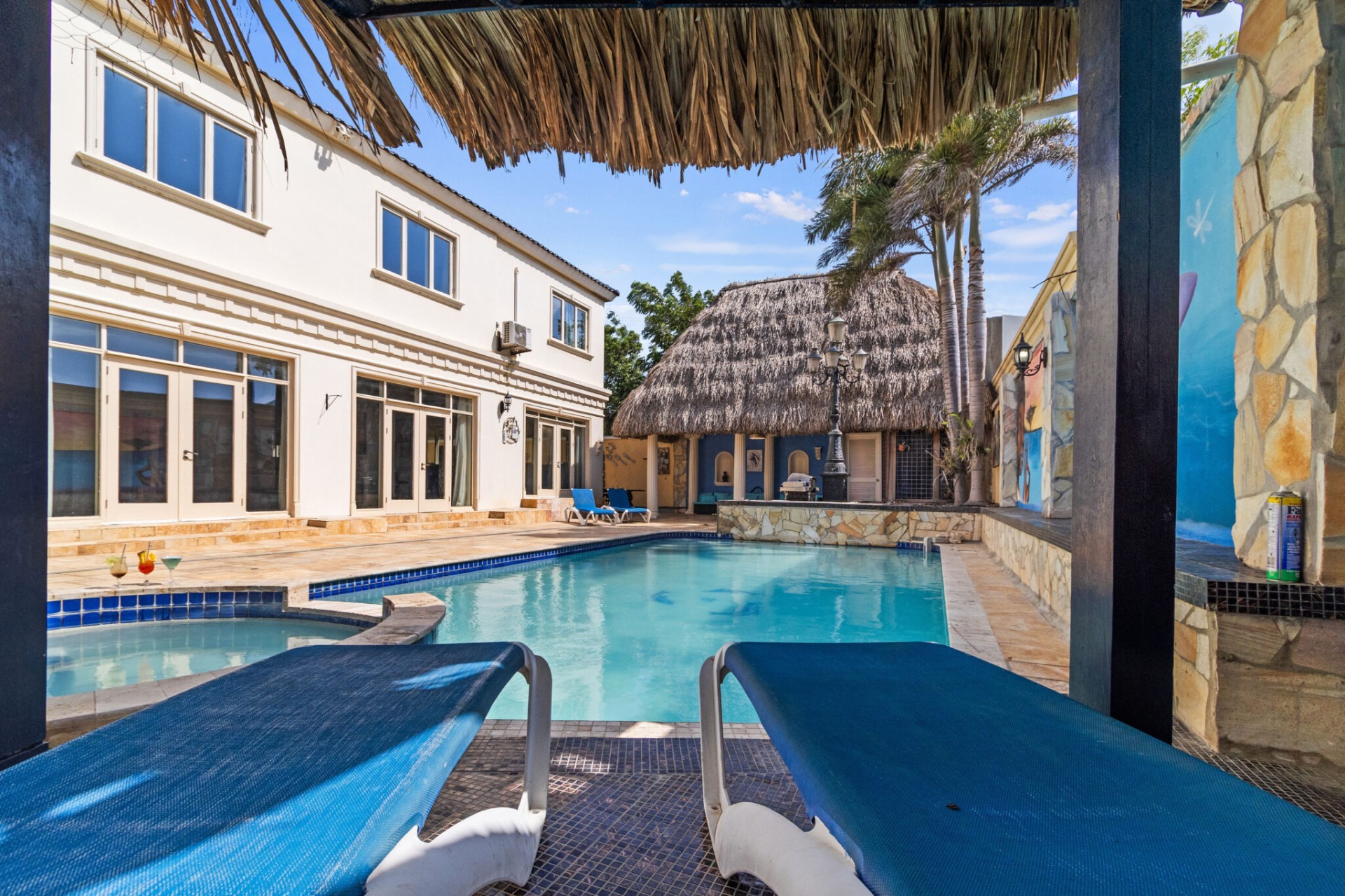 The jewel in the crown of Casa Piu Bella is undoubtedly its private sanctuary – a sparkling swimming pool and a bubbling jacuzzi invite you to indulge in luxury beneath the Caribbean sun. Whether you seek a refreshing dip or a soothing soak, this outdoor haven is a retreat like no other.