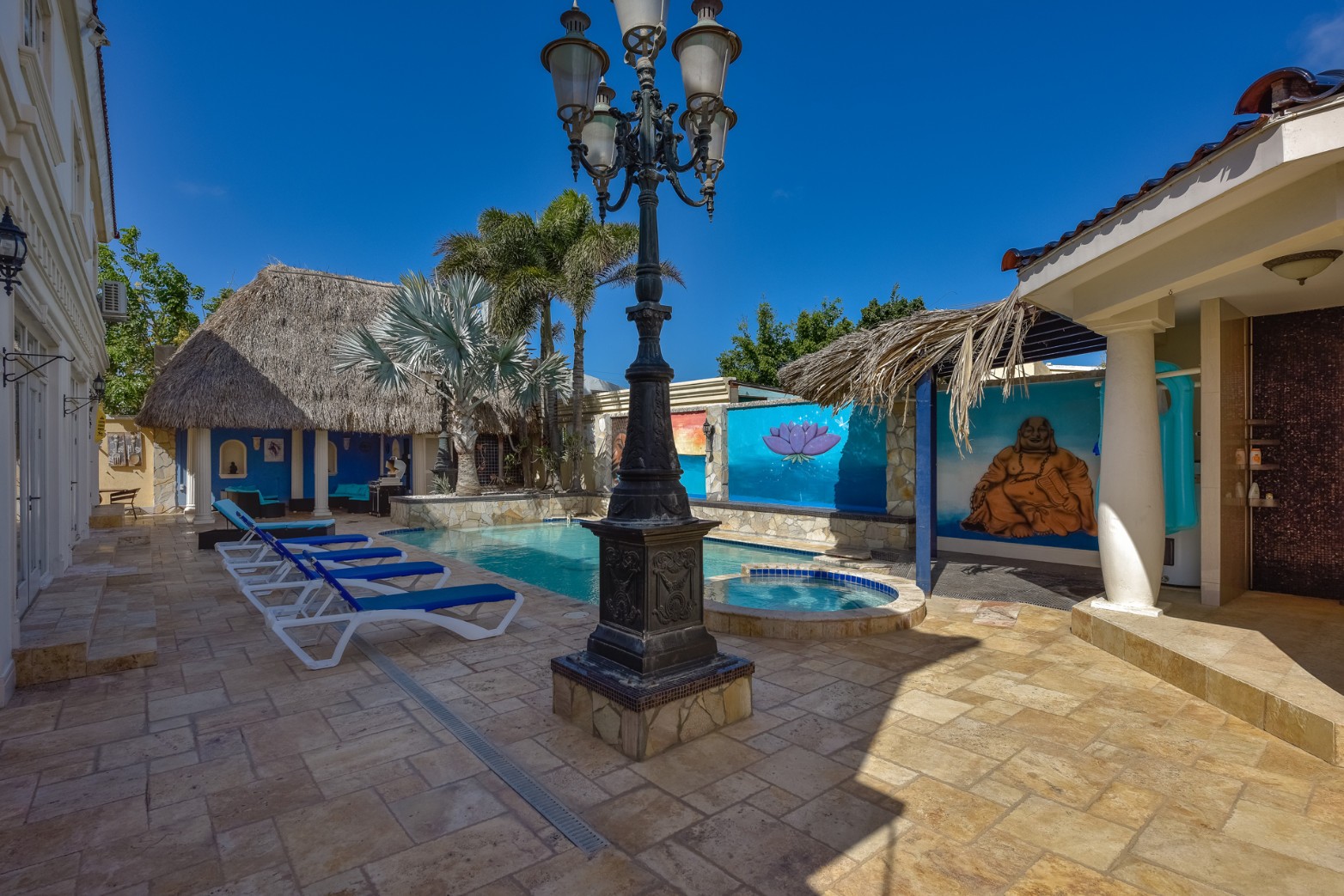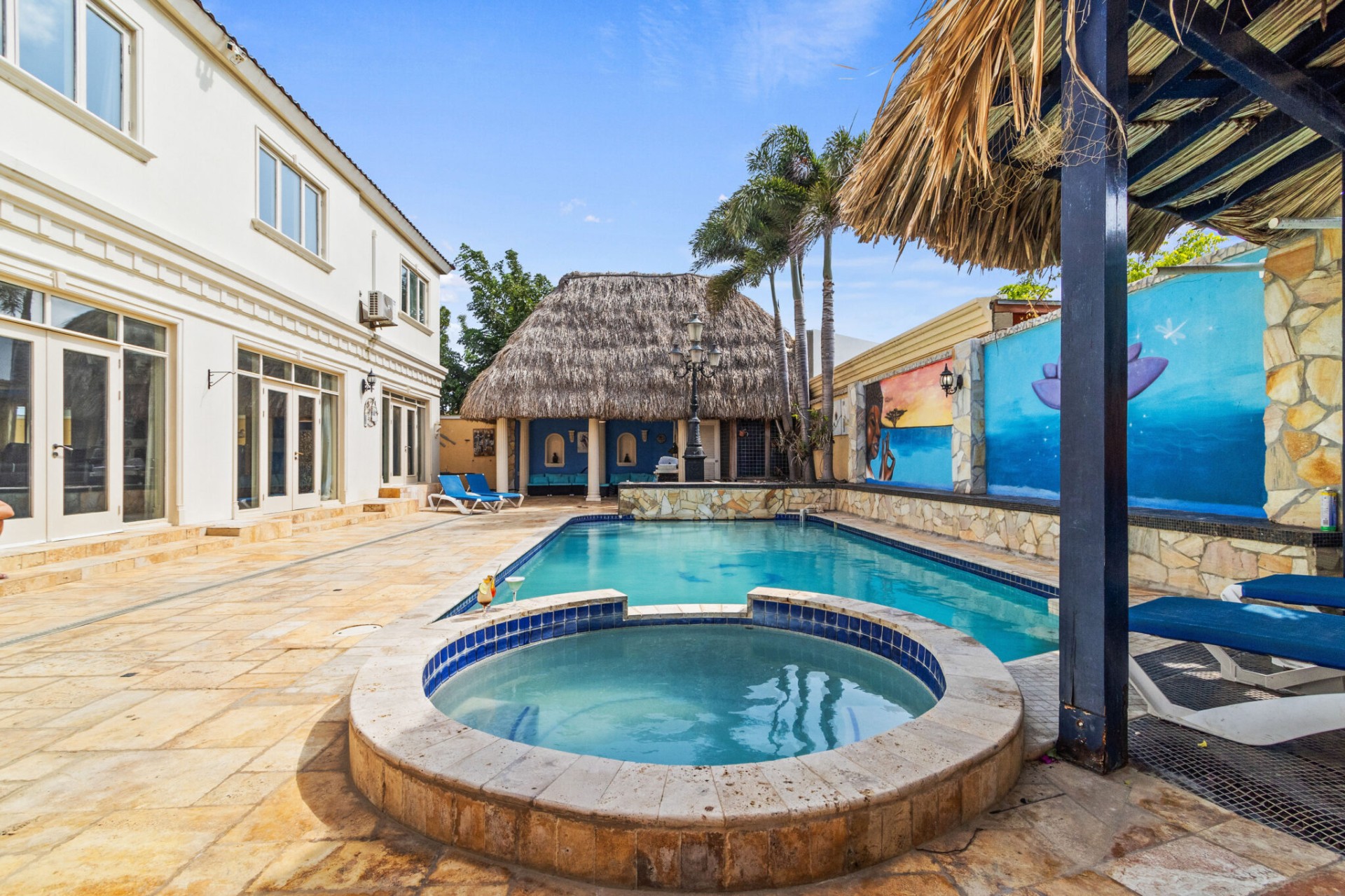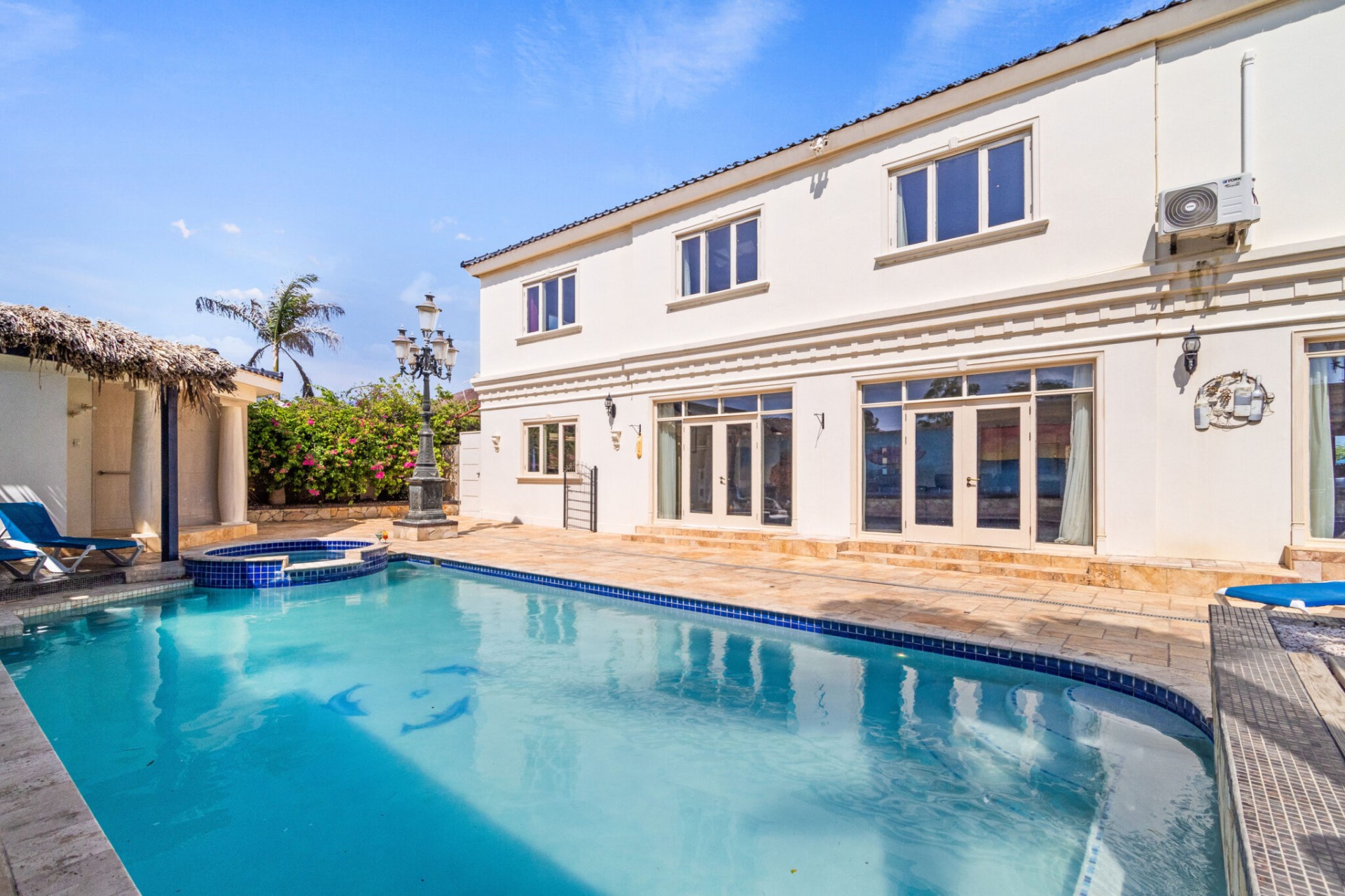 The jewel in the crown of Casa Piu Bella is undoubtedly its private sanctuary – a sparkling swimming pool and a bubbling jacuzzi invite you to indulge in luxury beneath the Caribbean sun. Whether you seek a refreshing dip or a soothing soak, this outdoor haven is a retreat like no other.