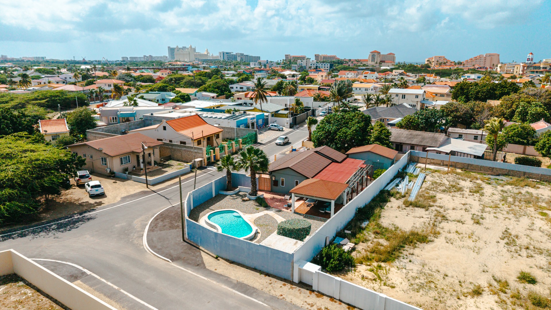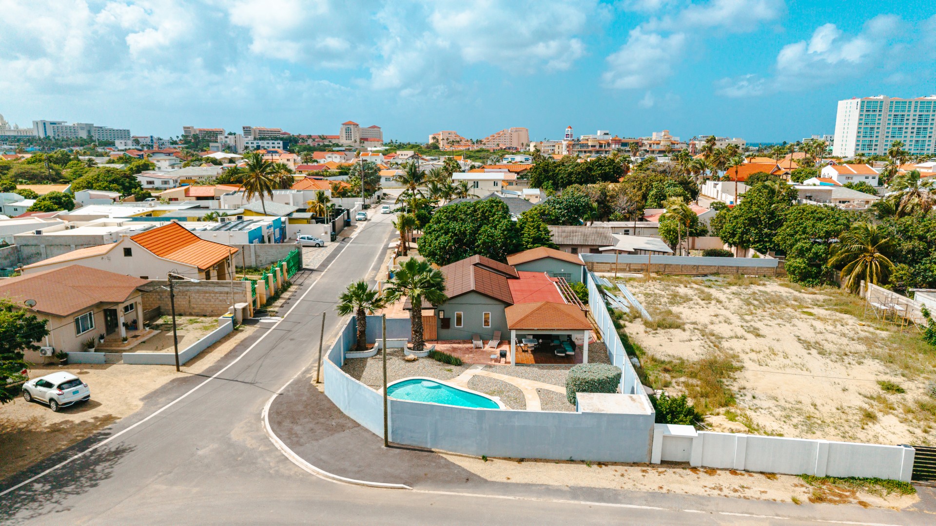 Situated in the highly desirable Palm Beach neighborhood, this well-maintained residence is built on 742 m² of long-lease land with a built-up size of 148 m². The home features 3 bedrooms and 2 bathrooms and is located just minutes from the high-rise hotel area, shopping malls, and Aruba’s famous white-sand beaches.