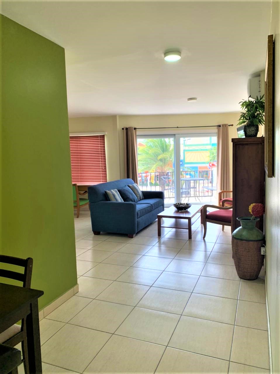Beautiful 1 bedroom apartment available for long term rent, located in the center of capital city Oranjestad in Aruba, within walking distance to shops, restaurants, cinemas, malls and beach. There are 3 apartments available and all units are furnished, airconditioned and have a private balcony overlooking cozy Djiespi Plaza with bars, nice music and entertainment. The monthly rent is US$ 750,= excluding utilities.