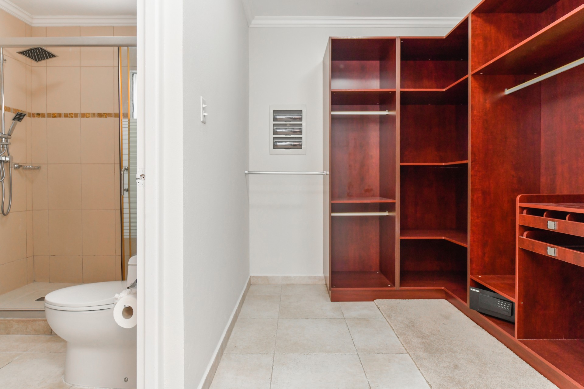 Two of the bedrooms feature en-suite bathrooms and spacious walk-in closets, providing a comfortable and private living experience. The property also includes a maid’s quarter, ideal for extra living space, storage, or staff accommodation.